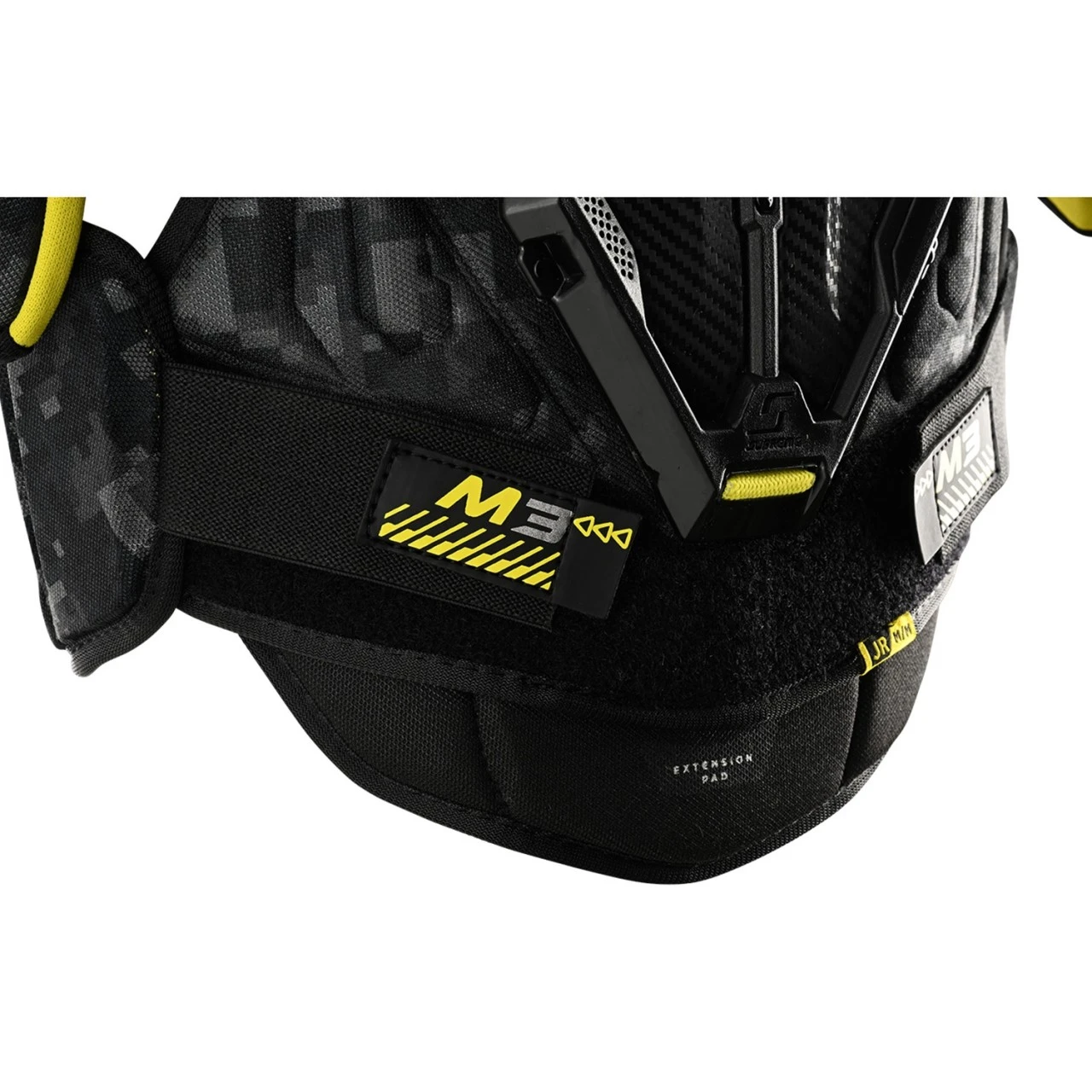 Beim Bauer Supreme M3 Schulterschutz sorgt das Upgrade des beweglichen Brustbereichs fĂŒr eine noch bessere Passform und mehr Bewegungsfreiheit. Die Schulterkappen mit Low Profile AMP verrutschen nicht und bieten optimalen Schutz. Das bewegliche Brustbein sorgt fĂŒr mehr FlexibilitĂ€t. Der Bereich der WirbelsĂ€ule ist mit einer PE Einlage ausgestattet, um den RĂŒcken bestmöglich zu schĂŒtzen. Der Oberarmschutz ist verstellbar und mit geformtem PE ausgestattet, um auch die Arme perfekt zu schĂŒtzen.