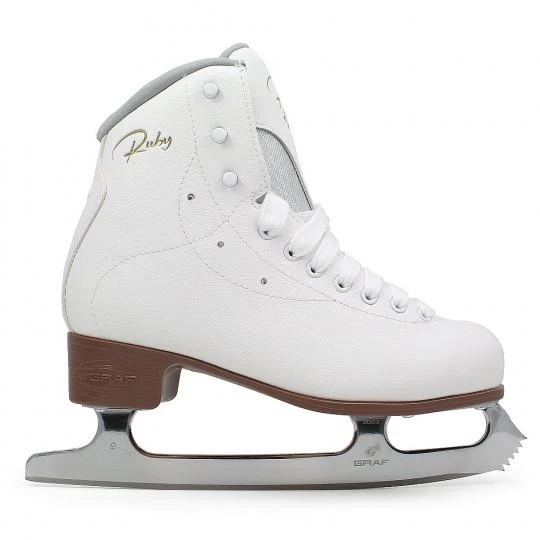 Der „Ruby Star“ der Firma GRAF ist ein robuster Anfänger-Schlittschuh fĂĽr Kinder und Erwachsene. Das Obermaterial besteht aus wasserabweisender Mikrofaser. Die gepolsterte Schaftkante und die Innenpolsterung sind aus atmungsaktiver Mikrofaser und bieten ein angenehmes TragegefĂĽhl. Die Flexkerben unterstĂĽtzen die Bewegung des FuĂźes. Die gepolsterte Zunge mit Mesh und PVC-Ăśberzug bietet Komfort und Stabilität. Der zusätzliche Haken verhindert, dass die Zunge verrutschten kann.Â